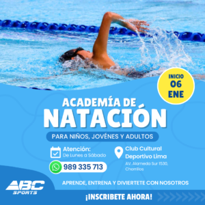Únete a nuestro equipode natación Conoce nuestras sedes y horarios matriculate ya! Únete a nuestro equipo de natación Conoce nuestras sedes y horarios matriculate ya! Nuestros atletas en competencias Nuestros atletas en competencias NataciónPrograma para todas las edades desde etapa formativa hasta la etapa competitiva conocer más RunningEntrenamientos personalizados para tods los niveles. Plan que se llevara presencial o virtual. conocer más AcuatlónUniendo la natacion y carrera, tendremos un equipo infantil, juvenil y master conocer más NataciónPrograma para todas las edades desde etapa formativa hasta la etapa competitiva conocer más RunningEntrenamientos personalizados para tods los niveles. Plan que se llevara presencial o virtual. conocer más AcuatlónUniendo la natacion y carrera, tendremos un equipo infantil, juvenil y master conocer más ÚNETE A NUESTRAS CLASES Temporada Verano Unete a nosotros en nuestras clases Pregunta por las promociones de matricula familiar, socios (chorrillos) y % de descuento por matricula en mas de dos meses Consultas al whatsapp Equipo CalificadoContamos con profesores capacitados que diseñan clases según las necesidades del atleta. Equipo CompetitivoContamos con un equipo que se constantemente se prepara para diversas pruebas, logrando grandes resultados. Instalaciones AdecuadasLas piscinas cuentan con todos los estándares de sanidad y seguridad Somos una FamiliaNo solo encontraras un gran ambiente para entrenar sino una familia que te apoyara en cada logro ÚNETE A NUESTRAS CLASES Temporada Verano Unete a nosotros en nuestras clases Pregunta por las promociones de matricula familiar, socios (chorrillos) y % de descuento por matricula en mas de dos meses Consultas al whatsapp Equipo CalificadoContamos con profesores capacitados que diseñan clases según las necesidades del atleta. Equipo CompetitivoContamos con un equipo que se constantemente se prepara para diversas pruebas, logrando grandes resultados. Instalaciones AdecuadasLas piscinas cuentan con todos los estándares de sanidad y seguridad Somos una FamiliaNo solo encontraras un gran ambiente para entrenar sino una familia que te apoyara en cada logro